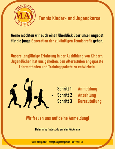 Bei Fragen zu den Kinderkursen steht Ihnen unser Rezeptionsteam gerne telefonisch unter 01/799 01 01 bzw. per E-Mail unter rezeption@dasspiel.at zur Verfügung!