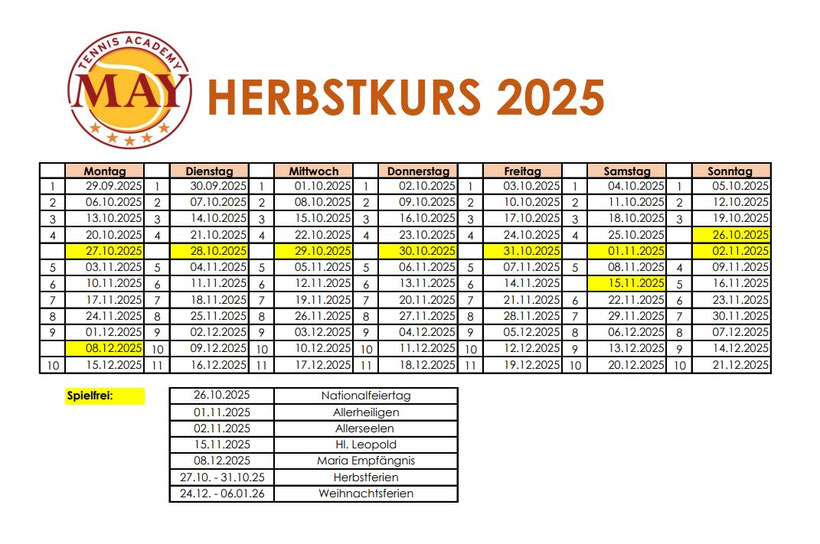 Herbstkurs: 29.09.2025 - 21.12.2025