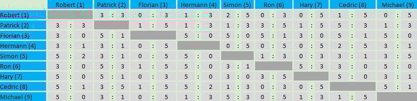 Markus folgt mit neun gewonnen Spielen auf Platz 2. Ron konnte acht Spiele gewinnen und folgt auf Platz 3.